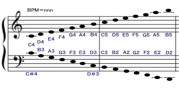(2)音名:国際式音名指定(例:A4、A#4)、休符は「z」を指定