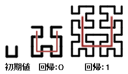 ヒルベルト曲線は、四つのルールで描きます。