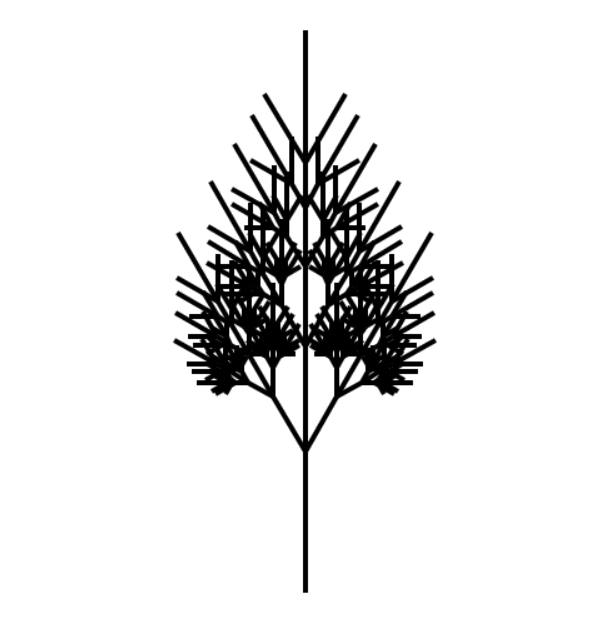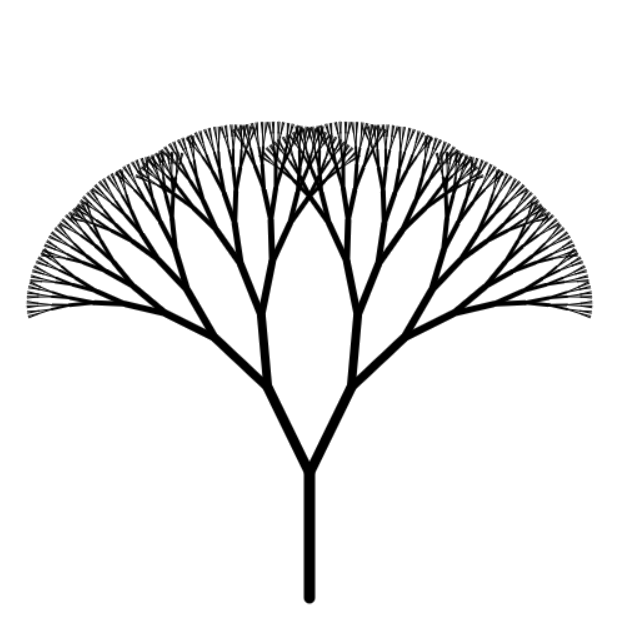 | 24 | 樹木曲線 | フラクタル図形の一種で、幹と左右の枝の樹木図形に、 左右の枝を幹に置き換えることを繰り返すと出来る図形です。 |