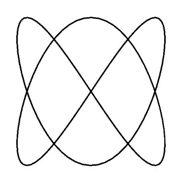 互いに直角方向に振動する二つの単振動を合成して得られる 平面図形のことです。 数式の値によってさまざまな図ができます。 |