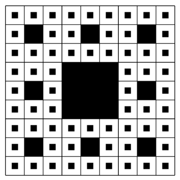 | 29 | シェルピンスキーのカーペット | シェルピンスキーのギャスケットはフラクタル図形の1種であり、 自己相似的な無数の正方形からなる図形です。 |