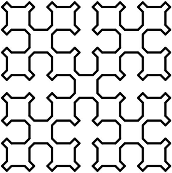 | 30 | シエルビンスキーの曲線 | 空間充填曲線の一種で、正方形上のすべての点を通るように描かれた曲線です。 閉曲線であるところに特徴があります。 |