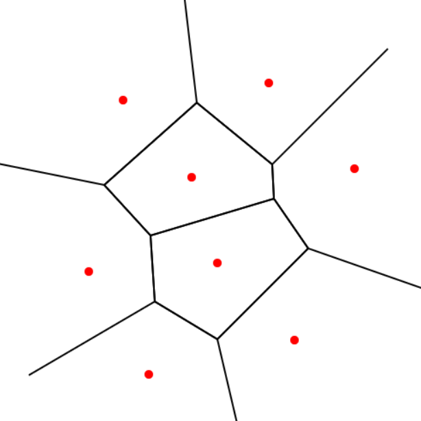 | 19 | ボロノイ図 | ボロノイ図は、与えられた母点のうち、どれに一番近いかで領域を分けた図です。 最も近い基地局を探す、新しい基地局の設置場所、散らばったデータの集約、 画像のデータ圧縮などに応用されてます。 |